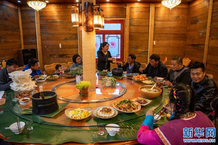 張淳煥一家在親戚開的農(nóng)家樂里吃年夜飯(2月11日攝)。新華社記者 孫非 攝