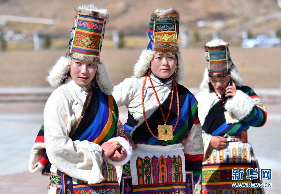 2月12日在藏北當(dāng)雄縣拍攝的三名盛裝牧女。新華社記者 覺(jué)果 攝