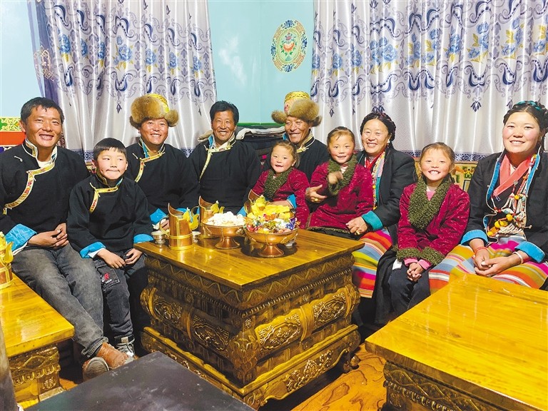 圖為江孜縣努康村石達一家歡聚一堂,拍攝全家福以作留念。扎西頓珠 攝
