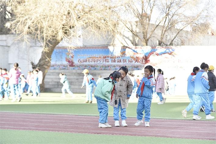3月2日早上8時許,拉薩市第一小學(xué)門口熱鬧非凡。孩子們在家長的護(hù)送下背著書包、系著紅領(lǐng)巾,經(jīng)過體溫測量、消毒等疫情防控工作后,興奮地邁入校門。進(jìn)入校園后,爭著跟每一位老師問好,迫不及待地和許久不見的同學(xué)分享愉快的假期生活?!伴_學(xué)了,我又能和同學(xué)們一起上課、玩耍,還能見到喜歡的老師,心里特別高興?!弊楷斃放d奮地說,“假期我們?nèi)叶既コ啥加瓮媪?,我給班里的小伙伴們都帶了禮物,希望他們會喜歡?!?/p>