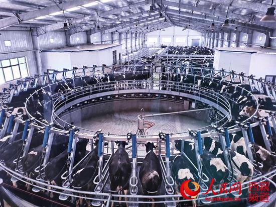 全自動(dòng)轉(zhuǎn)盤式擠奶車間。李海霞 攝