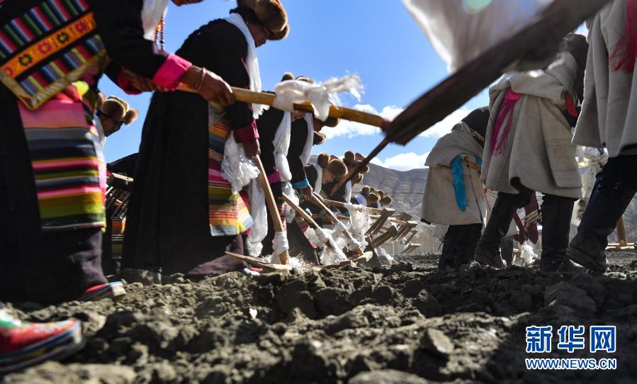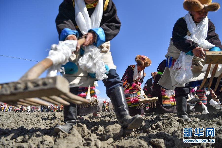 3月16日,克松社區(qū)居民在參加春耕儀式。新華社記者 普布扎西 攝