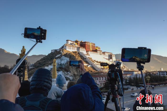 資料圖為2021年1月1日,游客、市民在拉薩布達(dá)拉宮觀景臺觀看日出。江飛波 攝
