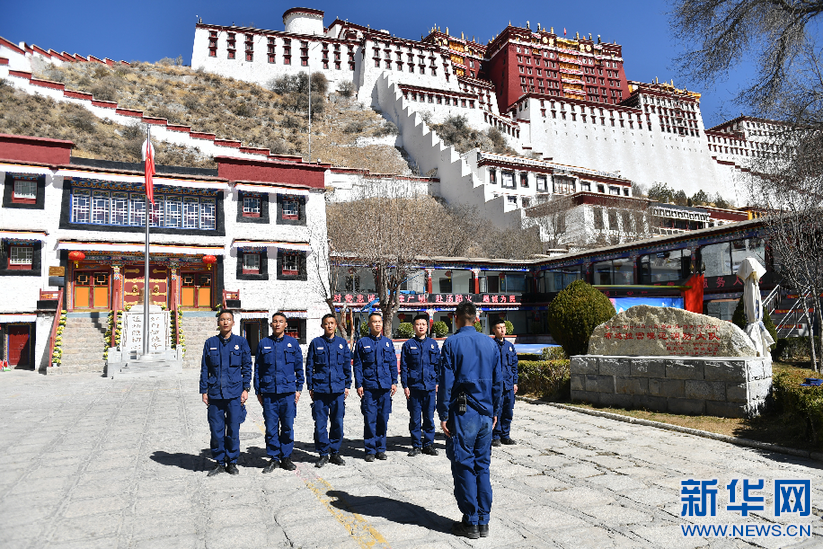 布達(dá)拉宮消防救援大隊(duì)隊(duì)員準(zhǔn)備進(jìn)入宮殿檢查消防設(shè)施(3月4日攝)。新華社記者 孫瑞博 攝