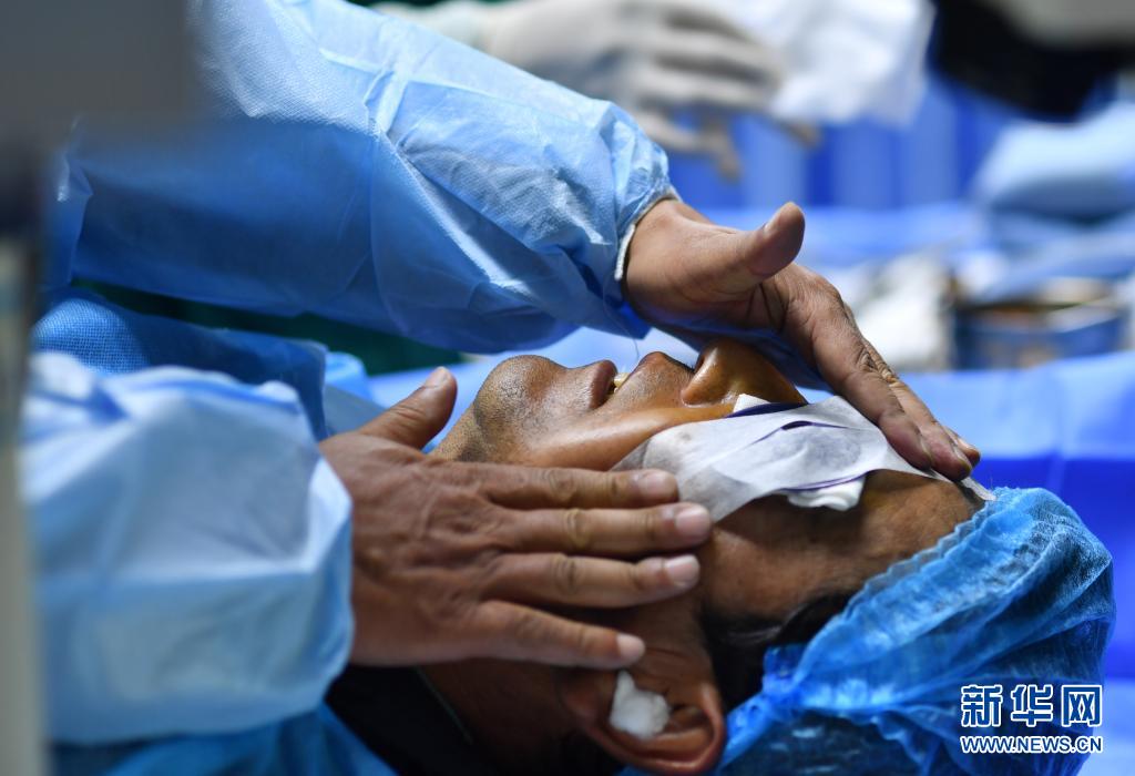 3月24日,西藏拉薩光明眼科康復(fù)診療院醫(yī)生在給白內(nèi)障患者實(shí)施復(fù)明手術(shù)。新華社記者 覺(jué)果 攝