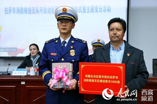 雙方還簽訂了共建協(xié)議,就圖書流動站建設、消防志愿服務隊建設和數(shù)字化電子圖書服務等達成一致。旦增卓瑪代表西藏自治區(qū)圖書館向拉薩市消防救援支隊贈送書籍1000冊。