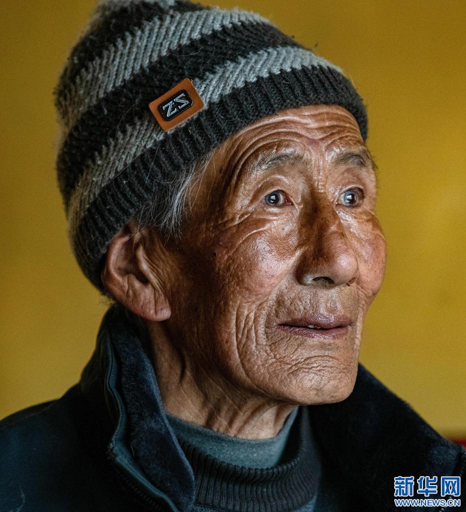 這是在拉薩市當(dāng)雄縣寧中鄉(xiāng)麥靈村拍攝的次仁老人肖像(4月16日攝)。新華社記者 孫瑞博 攝
