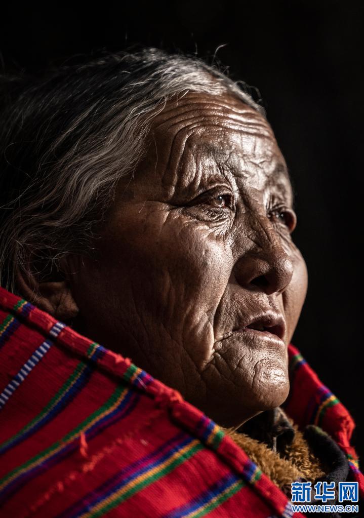 才旦拉姆老人的肖像(4月27日攝)。新華社 貢覺群培 攝