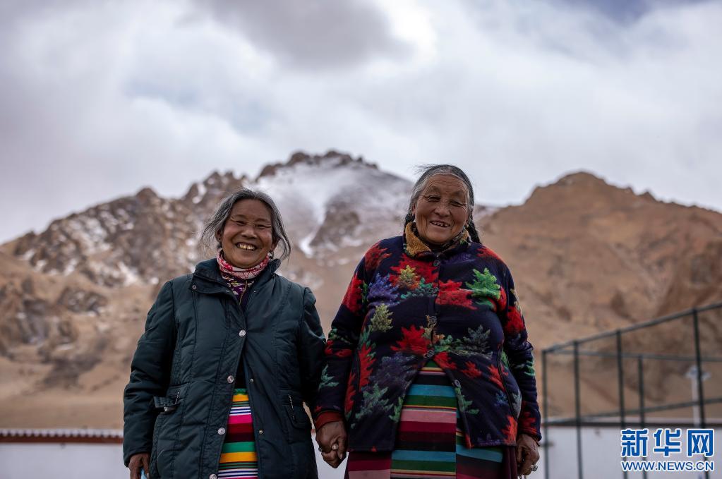 才旦拉姆老人(右)和妹妹在一起(4月27日攝)。新華社 貢覺群培 攝