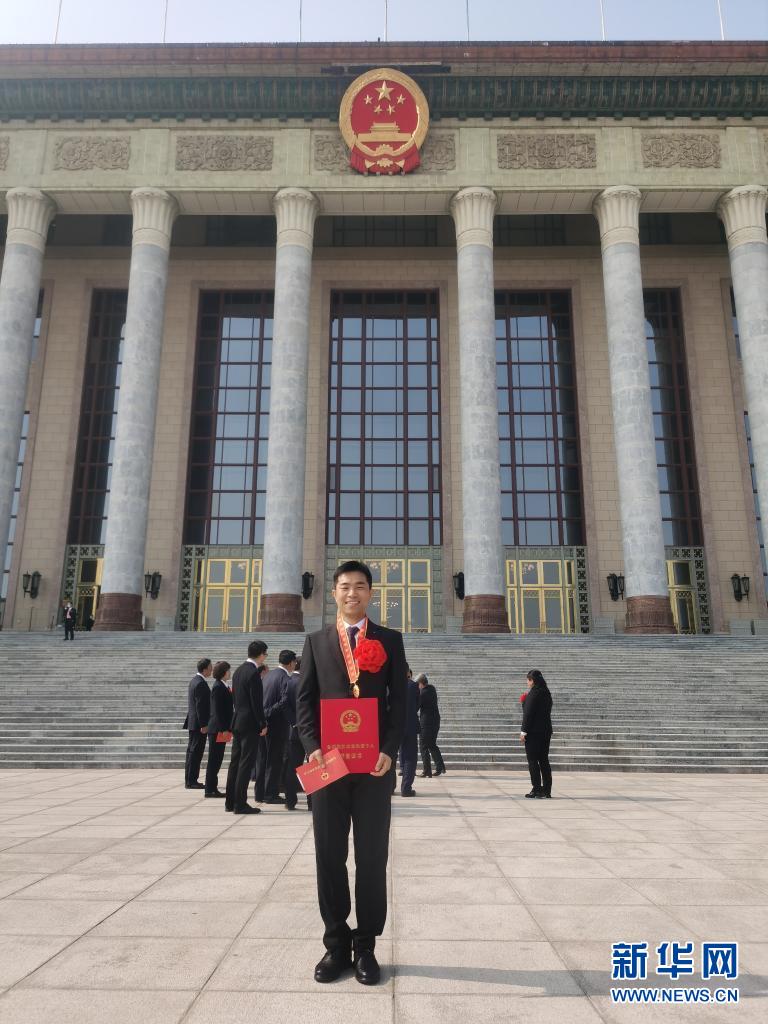 陳洪順榮獲全國脫貧攻堅(jiān)先進(jìn)個(gè)人稱號(hào)后,在北京人民大會(huì)堂前留影(2月25日攝)。新華社發(fā)