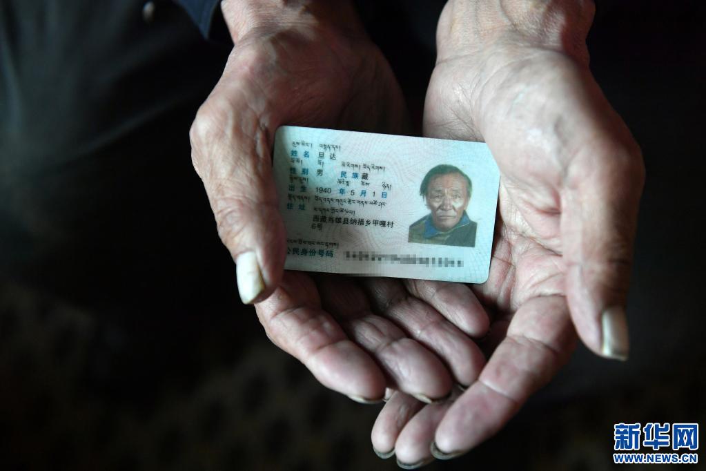 旦達老人的身份證(4月16日攝)。新華社記者 孫瑞博 攝