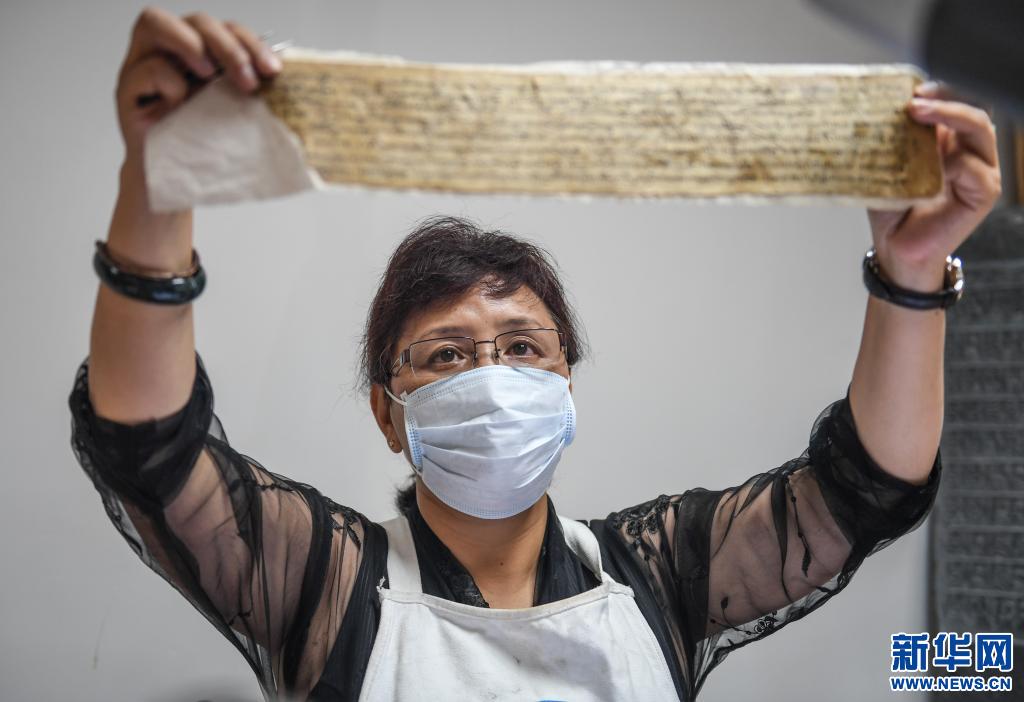 一葉、兩葉、三葉,這一天央拉共完成了五葉破損古籍的前期修復(fù)工作。據(jù)悉,待壓平、風(fēng)干的古籍定型后,她還將對(duì)修復(fù)后多余的補(bǔ)紙進(jìn)行剪裁等工作。