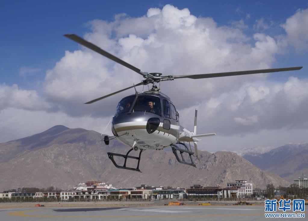 2019年3月20日,游客乘坐直升機(jī)空中游覽拉薩城。新華社記者晉美多吉 攝