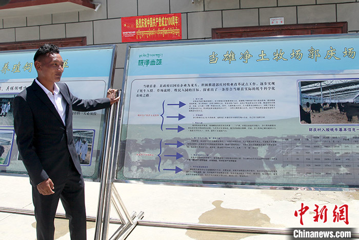 圖為6月2日,凈土牧場郭慶場負責(zé)人阿旺多布杰向記者介紹相關(guān)情況。中新社記者 陳小愿 攝