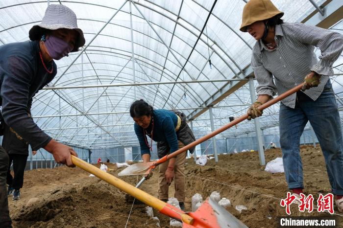 正在大棚內(nèi)松土的措姆介紹,自己是附近的農(nóng)牧民,根據(jù)熟練程度,她們每天的務(wù)工費從180元到200多元不等。“園區(qū)還負責一頓午飯,也不影響自家的農(nóng)活,有空就來。”措姆說。