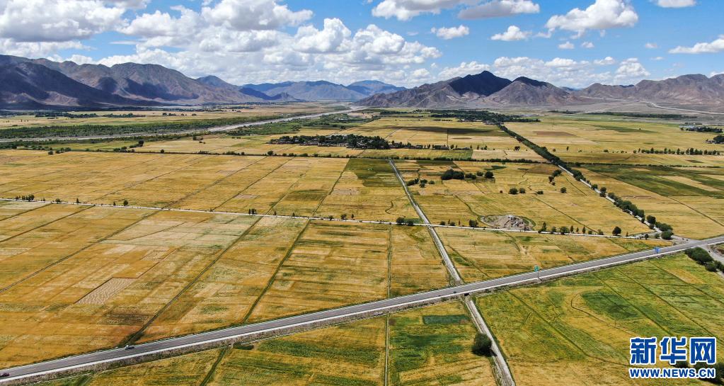 俯瞰西藏日喀則市白朗縣的農(nóng)田(2019年8月31日攝,無人機照片)。新華社記者 晉美多吉 攝