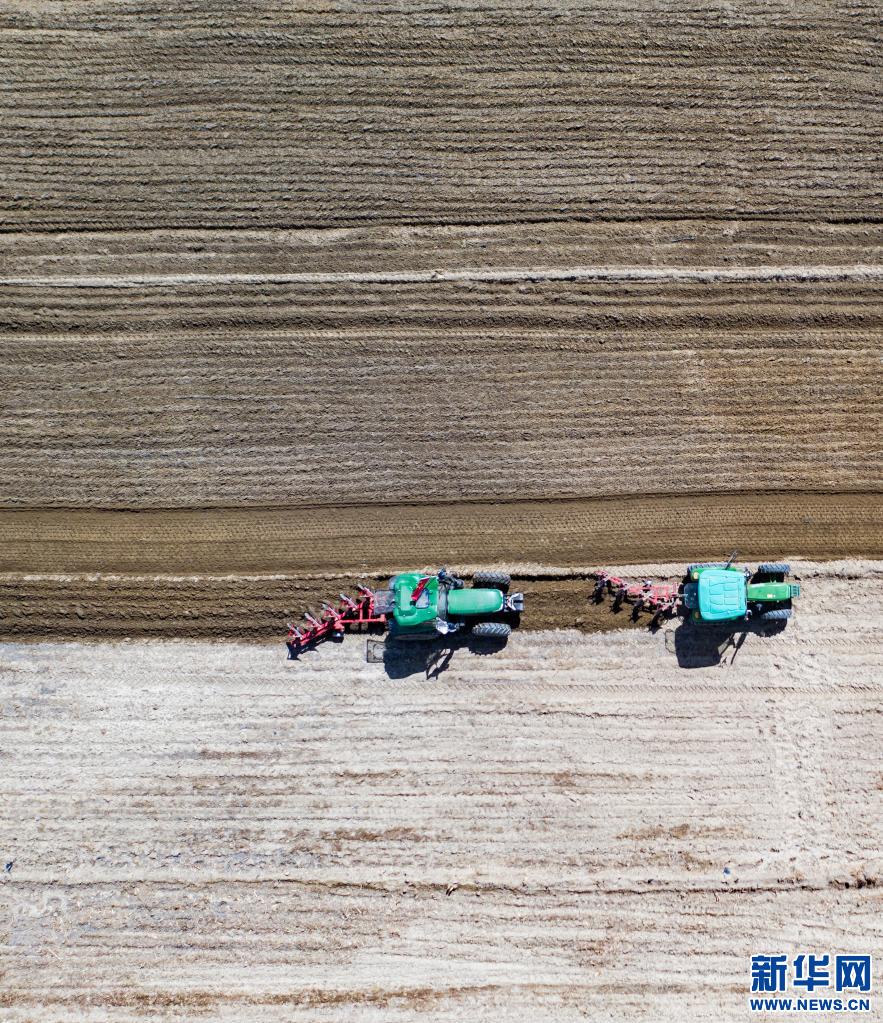 西藏拉薩市曲水縣茶巴朗村農(nóng)民利用機械設(shè)備播種“藏青2000”(無人機照片, 2020年4月22日攝)。新華社記者 普布扎西 攝