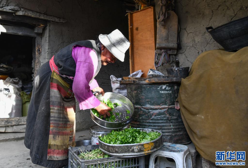 次旦拉姆在洗菜,準備晚飯(6月3日攝)。新華社記者 普布扎西 攝