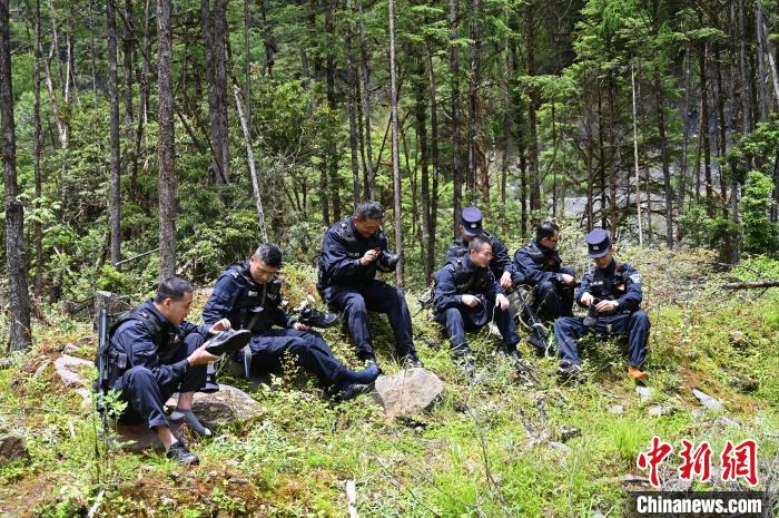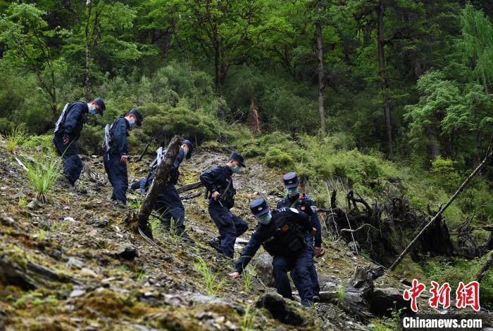 圖為移民管理警察在原始森林中小心翼翼前行。趙朗 攝