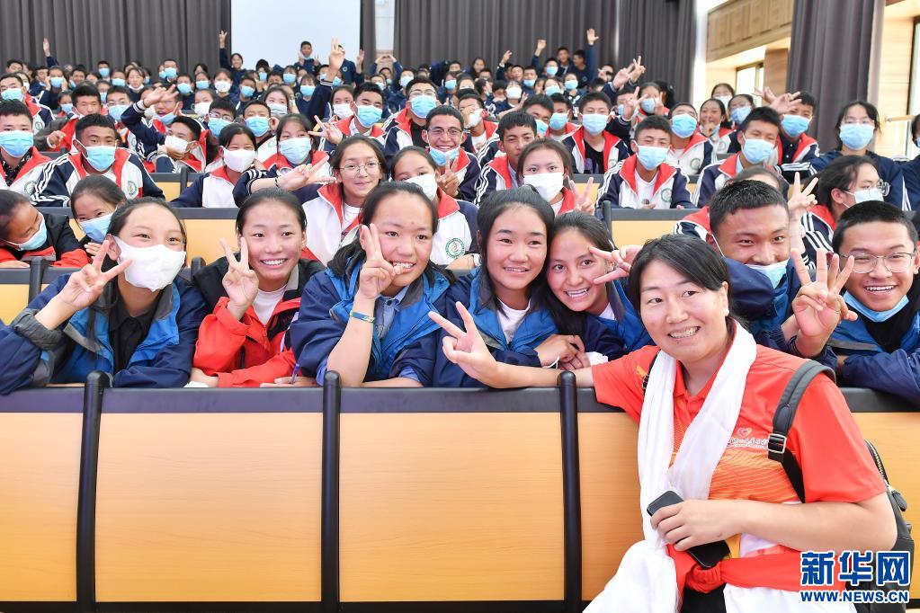 當(dāng)日,高敏攜西藏和平解放以來(lái)首個(gè)競(jìng)技體育世界冠軍、摔跤運(yùn)動(dòng)員西洛卓瑪和成功登頂七大洲最高峰并徒步到達(dá)南北極點(diǎn)的西藏登山運(yùn)動(dòng)員德慶歐珠走進(jìn)拉薩市阿里高級(jí)中學(xué)。該校在校學(xué)生均來(lái)自距拉薩超過1000公里的阿里地區(qū)。由于當(dāng)?shù)貧夂驐l件惡劣,交通不便,學(xué)校遷往拉薩,讓許多高海拔偏遠(yuǎn)地區(qū)的學(xué)生享受到了更優(yōu)質(zhì)的教育條件。