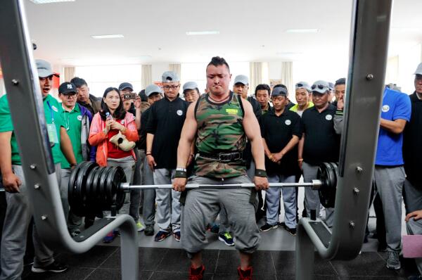 拉薩市城關區(qū)首屆健身大賽上,一位市民參加負重比賽。(2016年5月26日)。新華社記者 張汝鋒 攝