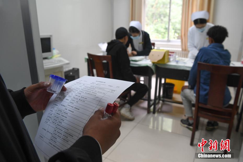 圖為參加定向培養(yǎng)士官體格檢查的學(xué)生正在進(jìn)行血常規(guī)檢查。 貢嘎來(lái)松 攝