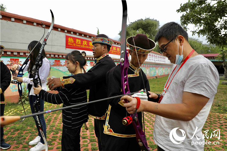 記者現(xiàn)場體驗響箭。人民網(wǎng) 次仁羅布攝