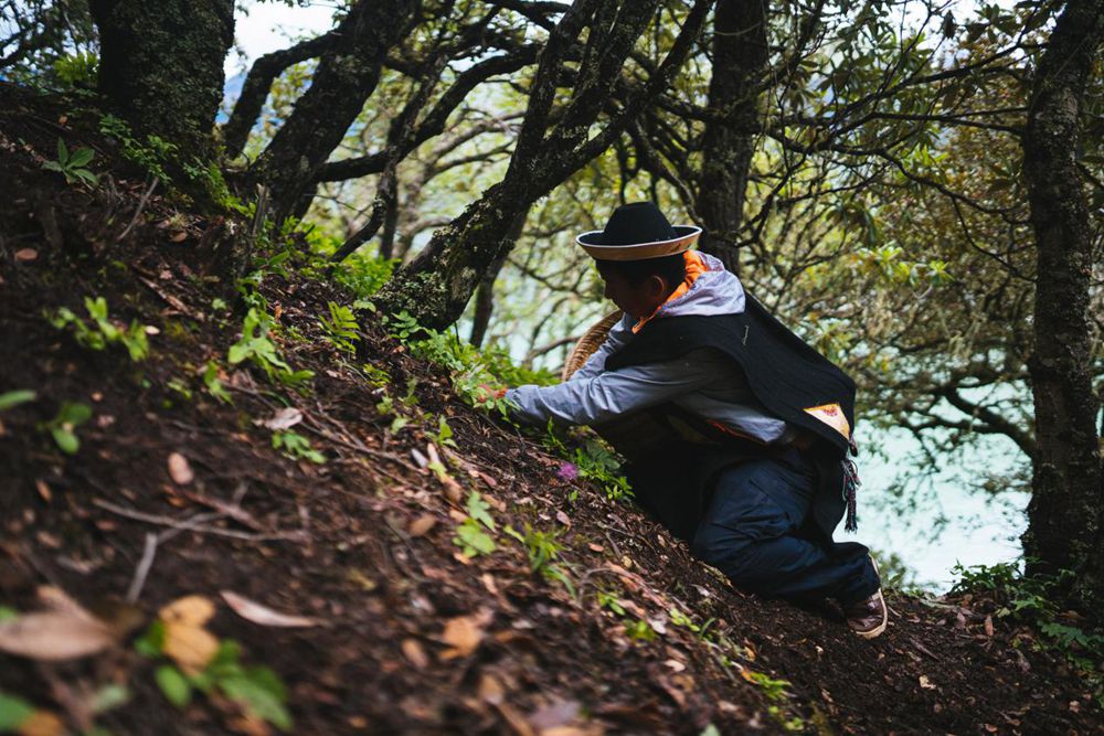 發(fā)現松茸,輕輕將其摘下。圖片由林芝市松茸協(xié)會提供
