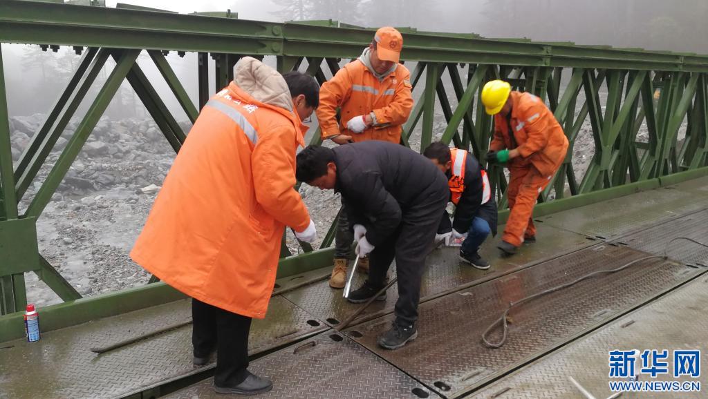 湯剛旦(右)和同事在果扎拉山執(zhí)行搶險(xiǎn)保通任務(wù)(2020年5月13日攝)。新華社發(fā)