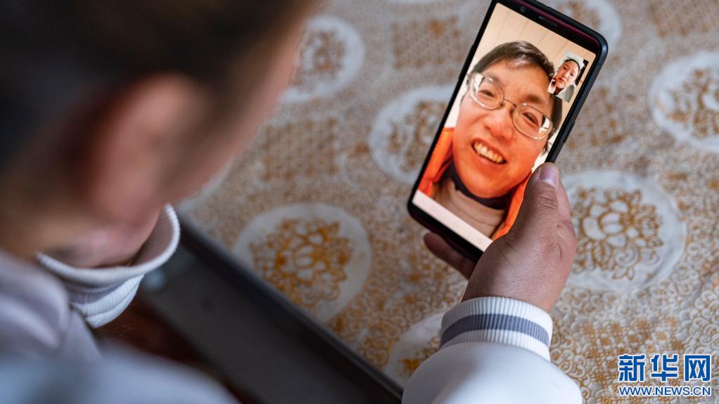 安娜在位于林芝市巴宜區(qū)的家中和父親視頻通話(4月4日攝)。新華社記者 孫非 攝