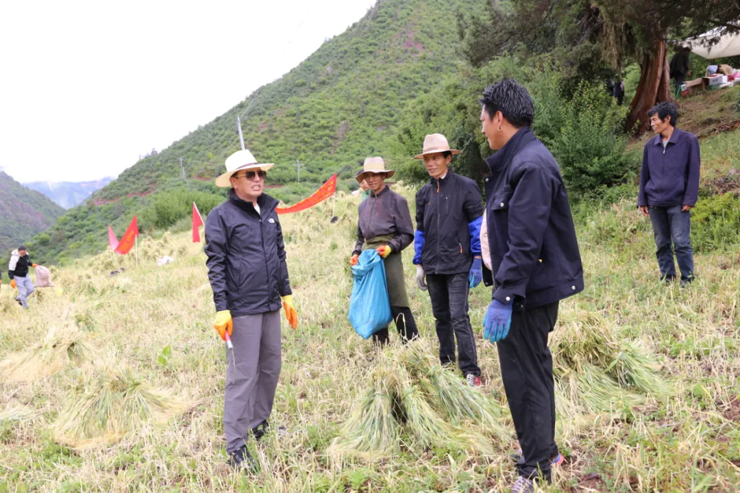 收割間隙,澤仁俊美與兩戶群眾交流,了解他們今年的收成情況,鼓勵他們抓住鄉(xiāng)村振興實施的各項好政策,進一步改善自己的生存生產(chǎn)生活條件,過上更加幸福美滿的生活。