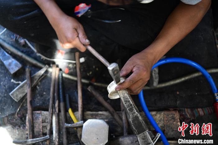 圖為工人正在使用鐵錘塑型。貢嘎來松 攝