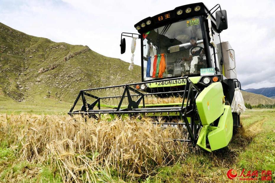 農(nóng)業(yè)機(jī)械化在當(dāng)?shù)厝嫫占?。人民網(wǎng) 次仁羅布攝