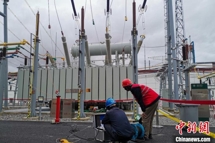 工作人員對(duì)變電設(shè)備進(jìn)行檢修。國(guó)網(wǎng)西藏電力有限公司 供圖