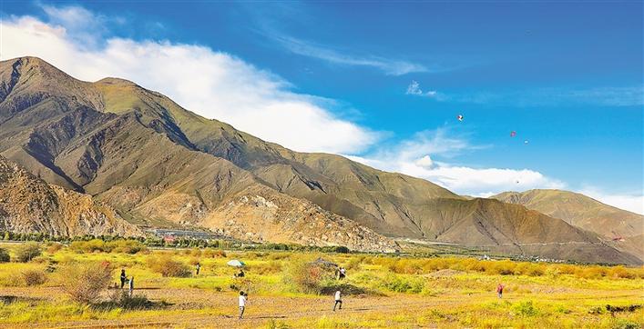 每年金秋時(shí)節(jié),在拉薩城的上空,便會(huì)出現(xiàn)千百只風(fēng)箏漫天飛舞、爭奇斗艷的景觀。在碧藍(lán)的天空下,那些形狀各異、如鷹似燕的風(fēng)箏,時(shí)而高飛、時(shí)而低落、時(shí)而旋轉(zhuǎn)、時(shí)而打斗,一旁觀戰(zhàn)或正在放風(fēng)箏的人仰頭觀看,歡呼聲、嘆息聲、助威聲此起彼伏,很是熱鬧。