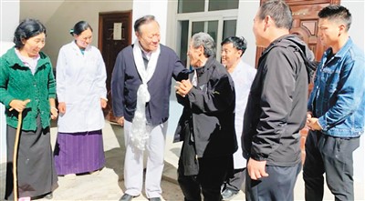 2020年9月,中國留學人才發(fā)展基金會理事長曹衛(wèi)洲(左三)帶隊前往洛隆縣,調(diào)研存量大骨節(jié)病患者,并了解已完成手術(shù)患者的恢復情況。