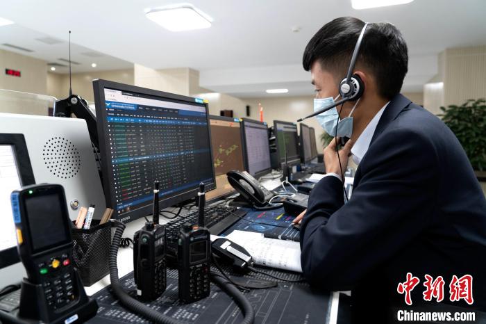 圖為機(jī)場(chǎng)工作人員了解相關(guān)動(dòng)態(tài)。程征宇 攝