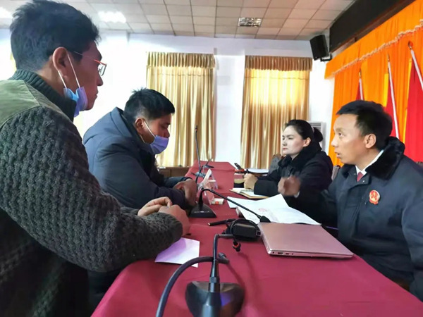 為外出務(wù)工人員“一對(duì)一”答疑法律知識(shí)。圖片由拉孜縣宣傳部提供
