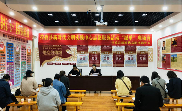 志愿服務(wù)活動(dòng)“派單”現(xiàn)場(chǎng)會(huì)。圖片由拉孜縣宣傳部提供