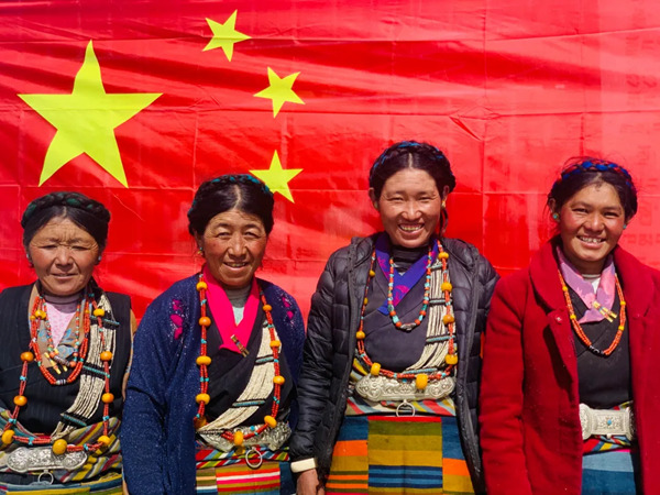 與國(guó)旗合影。圖片由拉孜縣宣傳部提供