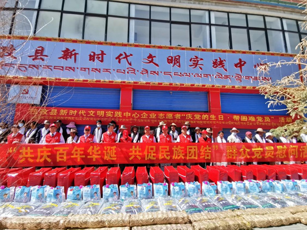 慰問(wèn)群眾。圖片由拉孜縣宣傳部提供