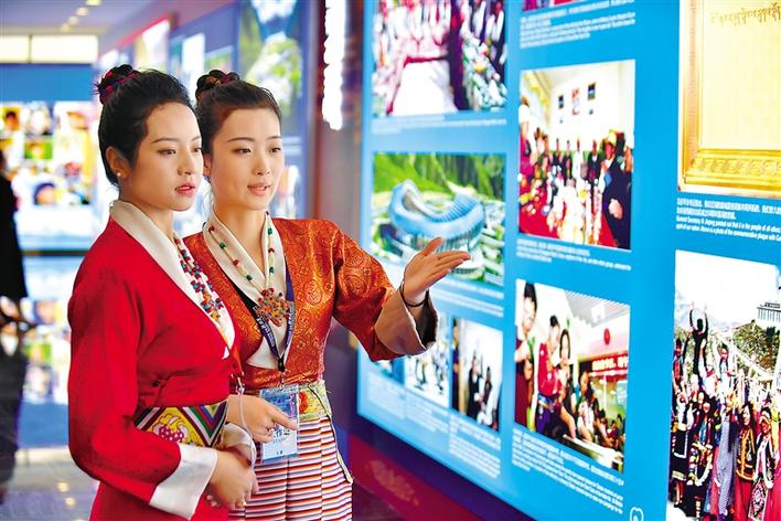 一幅幅精美絕倫的照片、一幀幀生動直觀的視頻畫面、一個個獨(dú)特壯觀的實物模型、一次次活潑有趣的互動展示,全面、立體、生動地向中外嘉賓展示了西藏和平解放70年來經(jīng)濟(jì)社會發(fā)展的歷史性成就,展示了中國共產(chǎn)黨團(tuán)結(jié)帶領(lǐng)西藏各族人民創(chuàng)造了彪炳千秋、利澤萬代、亙古未有的歷史功績。