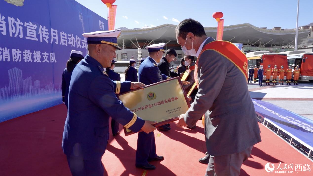 啟動(dòng)儀式上,表彰了2021年度拉薩市“119”消防先進(jìn)集體、先進(jìn)個(gè)人。與會(huì)領(lǐng)導(dǎo)為受表彰的單位及個(gè)人代表頒發(fā)證書。