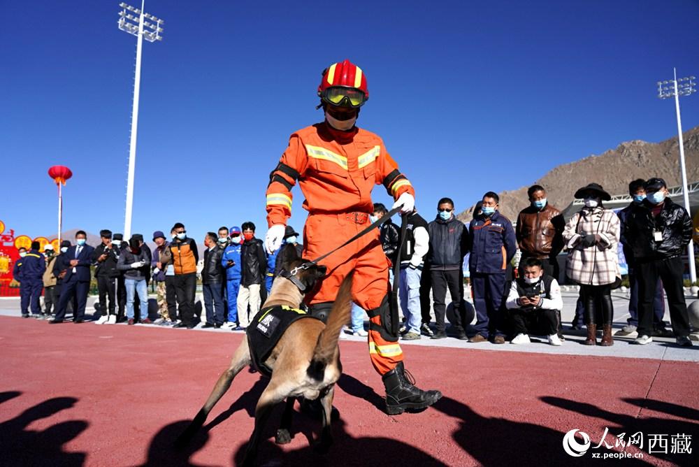 搜救犬現(xiàn)場(chǎng)演練。人民網(wǎng) 次仁羅布攝