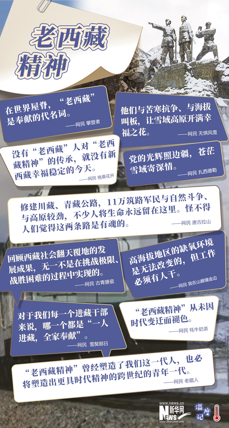 此后的幾十年間,一批又一批、一代又一代援藏干部、駐藏官兵踏上世界屋脊,扎根雪域高原,和當?shù)厝罕娨坏?,推動西藏各項事業(yè)又快又好發(fā)展,讓千年雪域高原變了樣,也賦予“老西藏精神”更為豐富的時代內(nèi)涵。“生命在這里很脆弱,生命在這里也很頑強?!本W(wǎng)民們在社交平臺上表達對雪域高原心向往之的同時,更不忘歌頌歷久彌新的“老西藏精神”。歷經(jīng)時代的變遷,這種精神正在感召并鼓舞更多人,扎根邊疆,造福西藏,讓那里的山水永遠碧藍、綺麗,讓那里的土地永遠充滿希望、幸福花開。(文字:徐可 海報設(shè)計:王曄)
