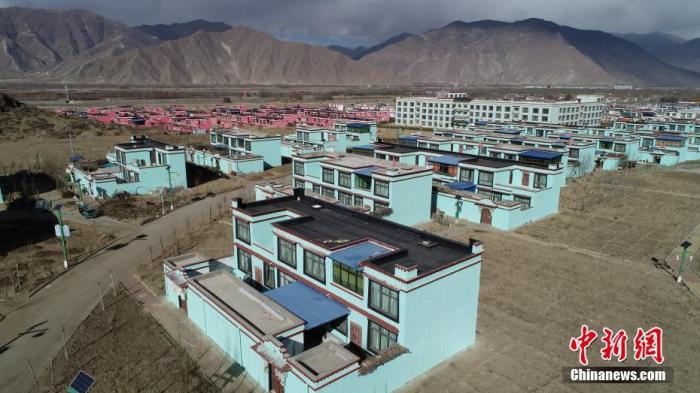 資料圖為航拍西藏拉薩市曲水縣四季吉祥村易地搬遷點。(無人機照片) 中新社記者 貢嘎來松 攝