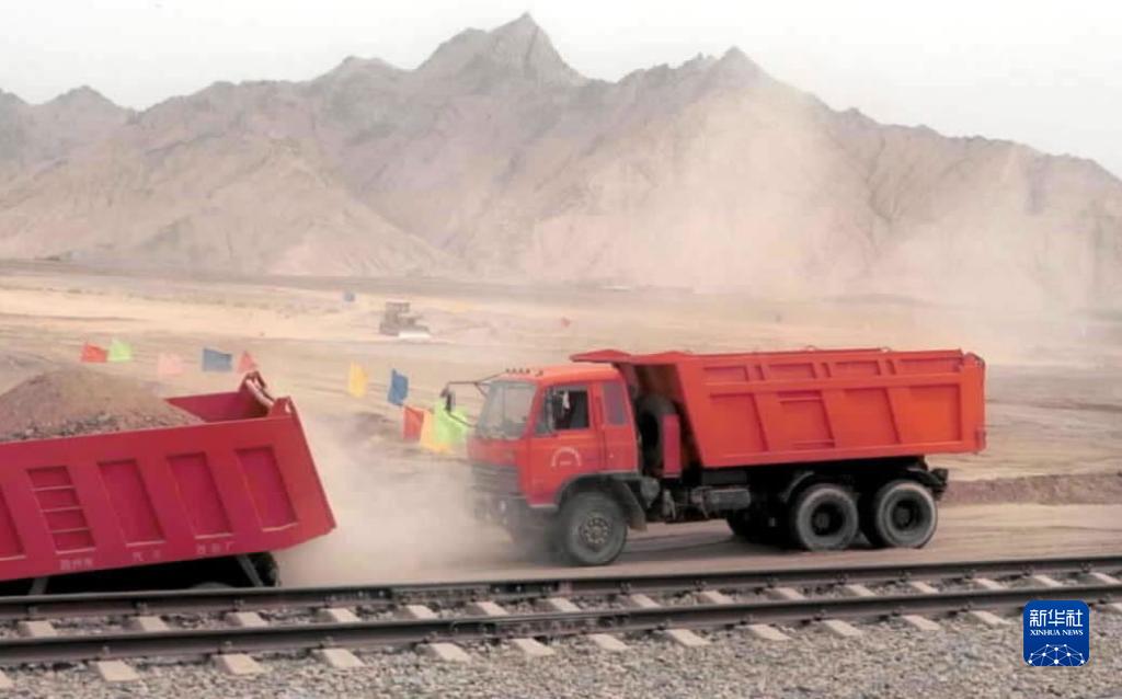 2001年6月29日,青藏鐵路二期工程格爾木至拉薩段鐵路正式動(dòng)工修建。格爾木市南山口車站是格拉段鐵路的起點(diǎn)。圖為南山口施工現(xiàn)場(chǎng)。新華社記者 高學(xué)余 攝