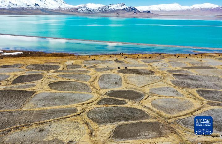西藏自治區(qū)那曲市尼瑪縣當(dāng)穹錯湖畔的農(nóng)田(2020年4月30日無人機拍攝)。新華社記者 田金文 攝