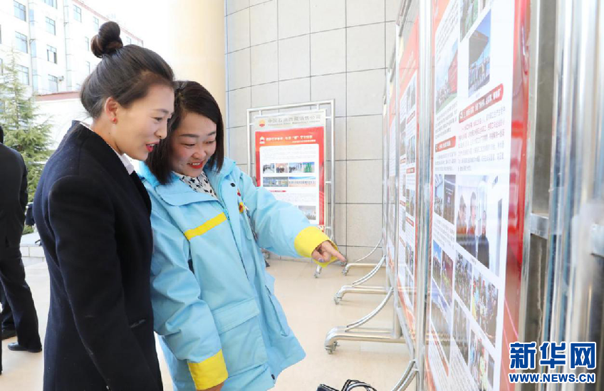 圖為與會代表熱議各級黨委黨建成果展。窮吉攝(新華網(wǎng)發(fā))