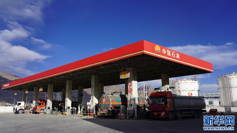 圖為油庫(kù)發(fā)油臺(tái)工作人員在交接工作(12月3日攝)。新華網(wǎng) 貢桑央吉(實(shí)習(xí)生) 攝